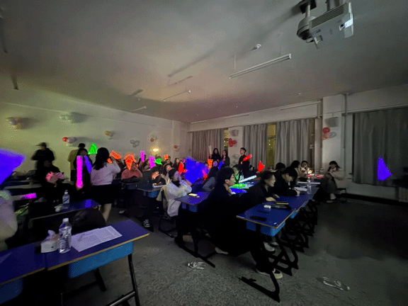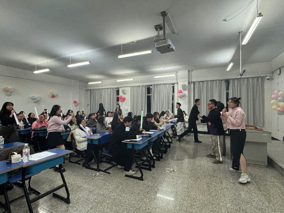 中场“闹钟炸弹”互动环节,师生踊跃参与答题接龙,猜灯谜、展现自身才艺,丰富的礼品激励让现场氛围愈发热烈。