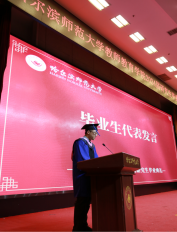 教师教育学院优秀毕业生代表2022级学科教学(思政)专业郑佳宝同学向深切关怀我们的领导、辛勤培育我们的老师,表示衷心的感谢!他表示,全体毕业生将继续努力,以青春之名,赴时代之约,成为新时代砥砺前行的奋斗者!