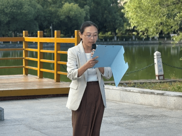 升旗仪式第二项2025级新生苏桐同学作为代表上台分享。她动情讲述了初入校园的憧憬与感动,承诺将以“空杯心态”投入研究生学习,主动探索学术前沿,在实践中锤炼本领,努力成长为“有理想、敢担当、能吃苦、肯奋斗”的新时代青年,话语间满是新生的朝气与决心。