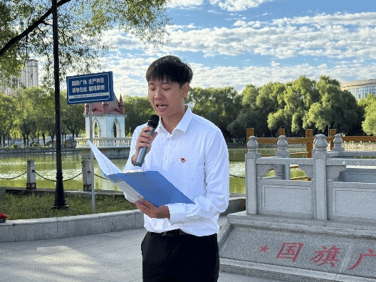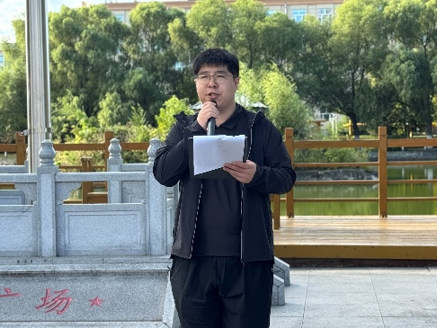 升旗仪式最后一项,学院团委副书记宋鸽聚焦“立德树人”根本任务,强调要深入学习贯彻习近平新时代中国特色社会主义思想。他希望同学们不仅要锤炼“专业过硬、技能娴熟”的学术能力,更要涵养“师德高尚、仪表儒雅”的品格修为,成长为兼具学识与担当的复合型人才。