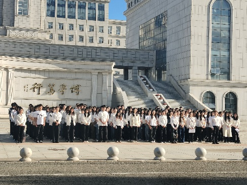 在 “9·3” 中国人民抗日战争暨世界反法西斯战争胜利纪念日刚刚过去不久的日子里,在这秋高气爽、充满希望的清晨,我们满怀着崇敬与激情,齐聚在此。2025 年9 月8日,我院特举办 “培根铸魂 向阳而生” 主题升旗仪式暨开学第一课,仪式由辅导员杨学冬主持,本次活动意义非凡,它不仅是新学期的开篇仪式,更是一次铭记历史、展望未来的精神洗礼。出席人员为教师教育学院团委副书记宋鸽、2025级全体研究生。