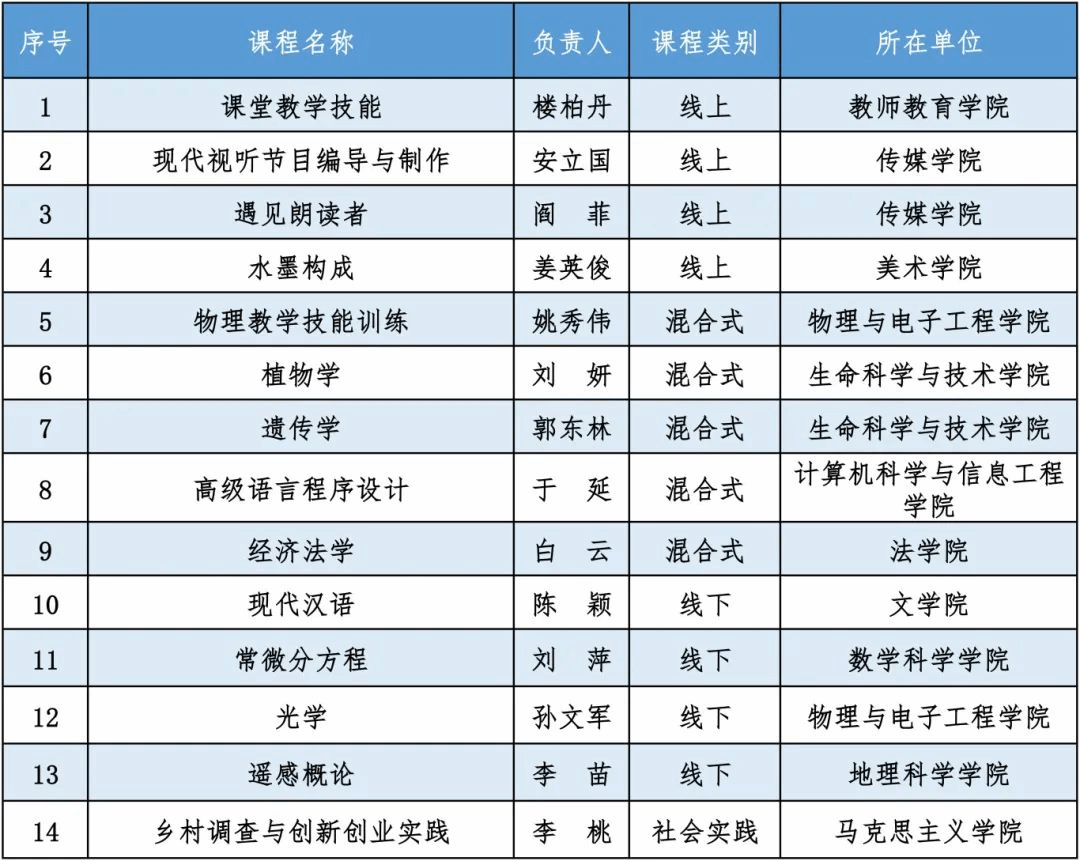 根据《教育部关于一流本科课程建设的实施意见》《教育部办公厅关于开展第三批国家级一流本科课程认定工作的通知》的有关要求,我校开展了一流本科课程组织申报、评审与推荐工作。8月21日,教育部公布了第三批国家级一流本科课程认定结果,我校14门课程被认定为国家级一流本科课程。
