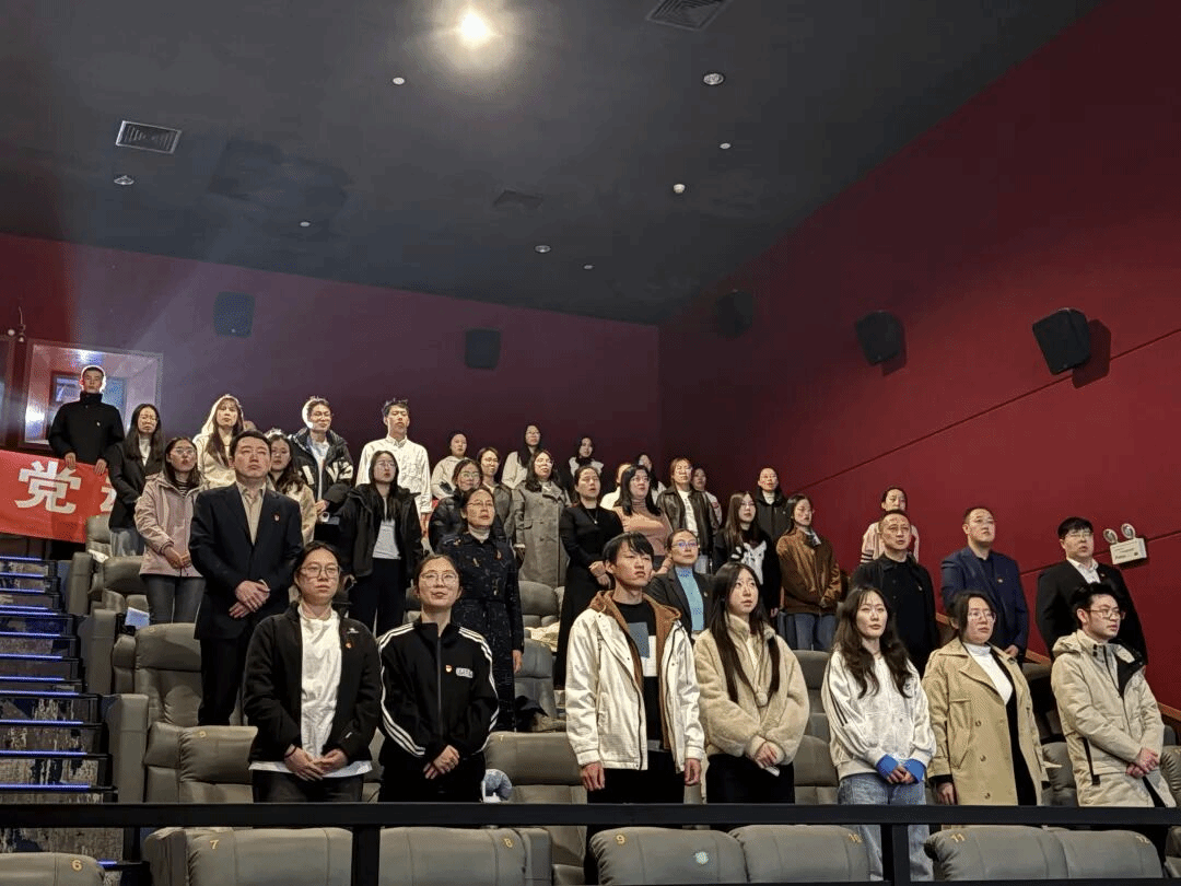 观影结束后,在党委书记李志宇的领誓下,全体党员面对鲜红的党旗,重温了入党誓词,铿锵有力的誓言表达了大家不忘初心、牢记使命的坚定信念。