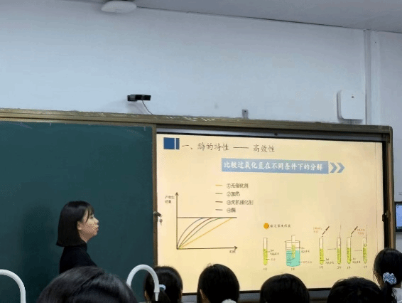 最后,李智慧老师以“医院中酶的应用”视频作为课堂导入,巧妙衔接知识与生活场景。课堂上,她先通过酶的专一性相关实验的简易讲解,为学生铺垫实验设计的基础认知;随后围绕温度、pH对酶活性的影响这一核心内容,组织学生自主设计实验,并以层层递进的问题串为引导,细致模拟实验操作流程,帮助学生理清逻辑脉络。课程尾声,李老师针对影响酶活性的两条核心曲线展开深入解读,让学生直观理解关键变量与酶活性之间的关联,在实践探究中扎实提升实验设计与分析能力。