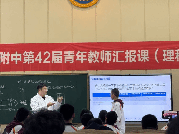 沈毅老师在《水进出细胞的原理》教学中,以袁隆平院士研发海水稻的实例导入,引导学生自主设计实验,通过课前兴趣小组录制视频、课堂交流分享等形式,充分调动学生参与积极性。课堂中“腌萝卜”小实验与AI技术模拟海水稻生长环境的巧妙设计,使学生将理论知识与生活实际紧密联系,体现了“学以致用”的教学理念。